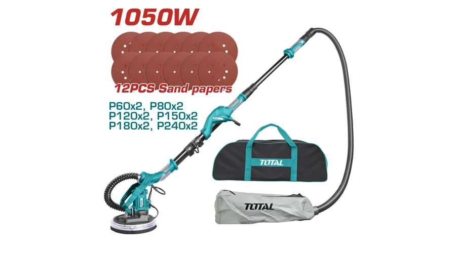 A Mennyezeti gipszcsiszoló TOTAL TWS10501 egy eszköz, amely gyorsan és könnyedén végzi el a gipszkartonfalak és mennyezetek befejező megmunkálását. Erős, 1050 W teljesítményű motorral és közvetlen hűtéssel van felszerelve, amely hatékony működést és hosszú élettartamot biztosít az eszköznek.