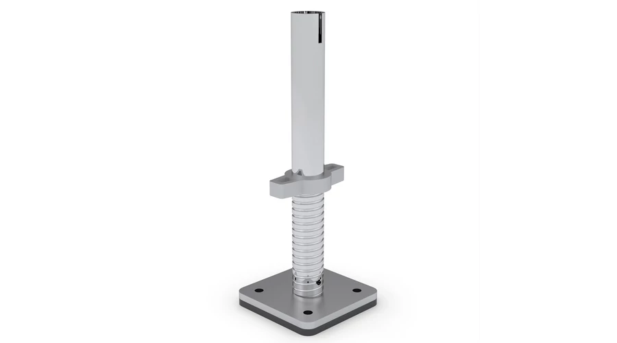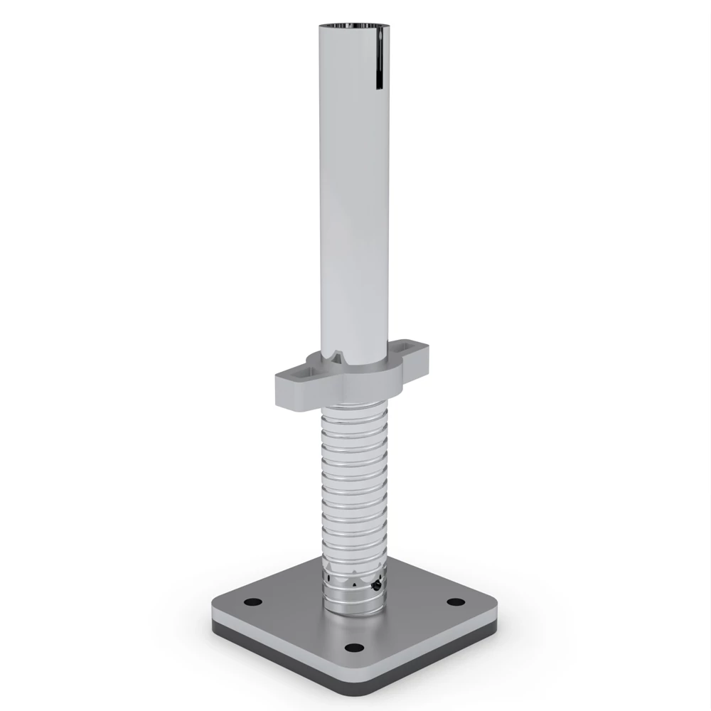 Az alumínium mobil állványzatok kerekeinek helyettesítésére tervezett állítható talplemez stabil és rögzített használatot biztosít az állványrendszerekhez. Ez a rögzítés különösen előnyös olyan helyzetekben, ahol nincs szükség mozgásra a talajon, mivel extra szilárdságot biztosít az állványzatnak és biztonságos munkakörnyezetet biztosít.