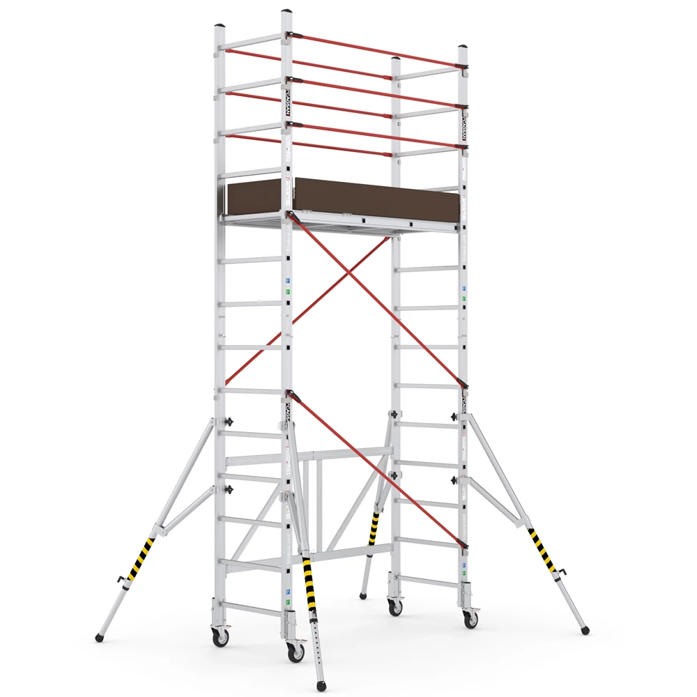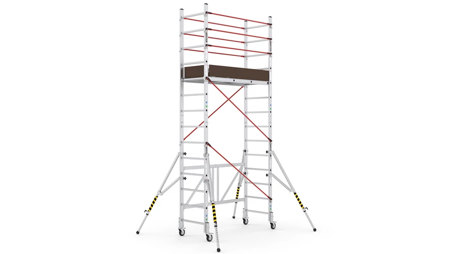 Az ALL_FLEX Folding Modular Scaffolding System egy mobil állványzati megoldás, amelyet gyakran kedvelnek a professzionális felhasználók az építőipari és karbantartási szektorban. Ez a rendszer olyan állványokból áll, amelyek kerekes és moduláris felépítésének köszönhetően könnyen felállíthatók és magasságuk állítható.