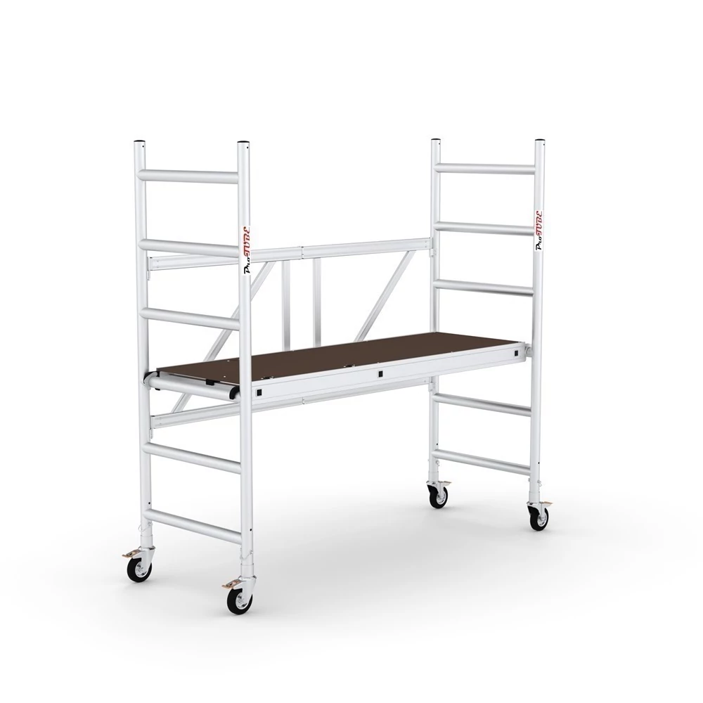 A ProTUBE F Karelia sorozat egy összecsukható alumínium állványrendszer, amely praktikus használatot biztosít, egy lépésben összecsukható és kis helyet foglal. Ezen tulajdonságoknak köszönhetően nagy kényelmet biztosít a telepítés és a szállítás során. Ezek az állványok kerekeiken állnak és mozognak anélkül, hogy bármilyen felülethez rögzíteniük kellene őket. A ProTUBE F360 modell oldalsó lábai biztonságosabb munkakörnyezetet teremtenek az alapterület növelésével. Az állvány alumínium anyagból készült, így könnyű és könnyen mozgatható. A telepítés egyszerű és kényelmes. A munkamagasság akár 5,6 m-ig állítható. Az állványplatform kitámasztóval rendelkezik, hogy minimalizálja a berendezések leesésének kockázatát működés közben.