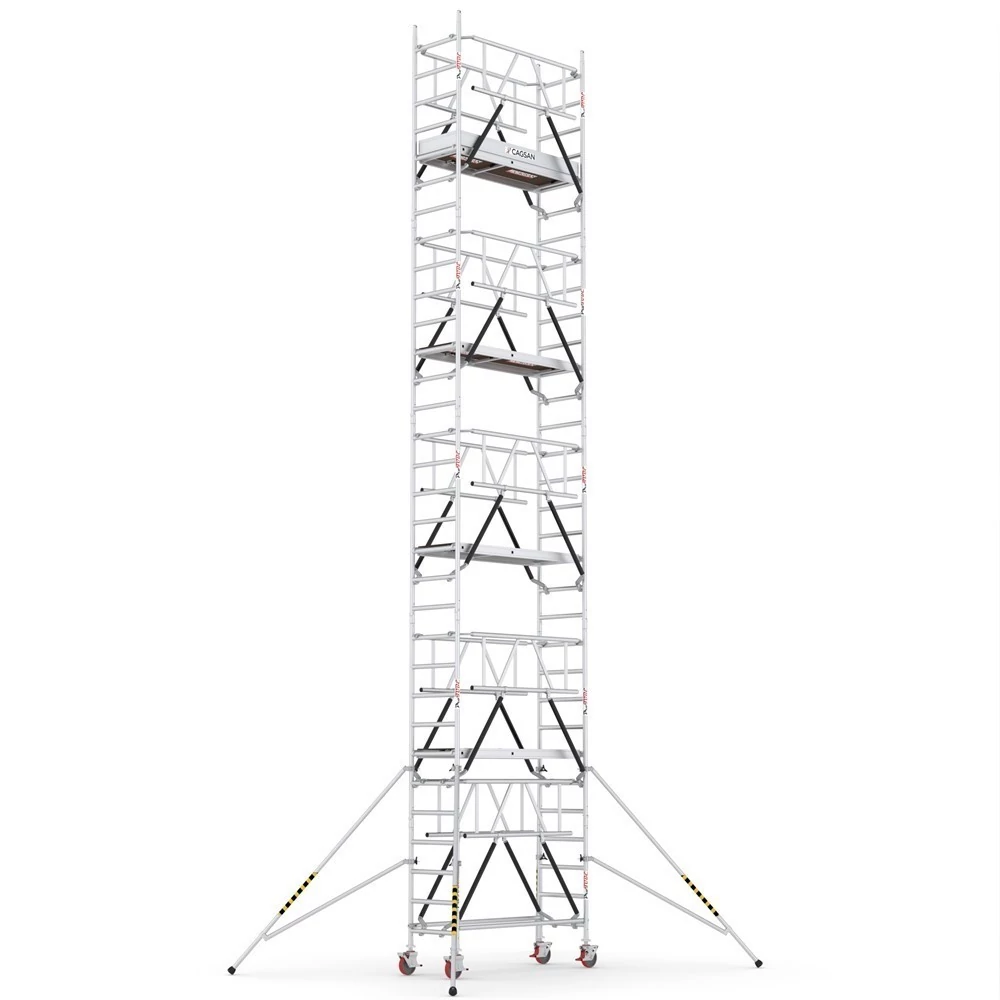 A legfelső emeleten található munkaállványhoz rögzíthető lábtartónak köszönhetően megszűnik annak a veszélye, hogy a munka közben leessen a dolgozó.