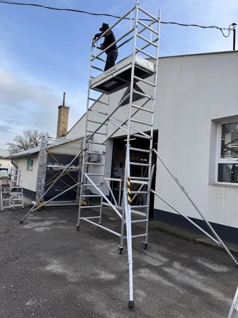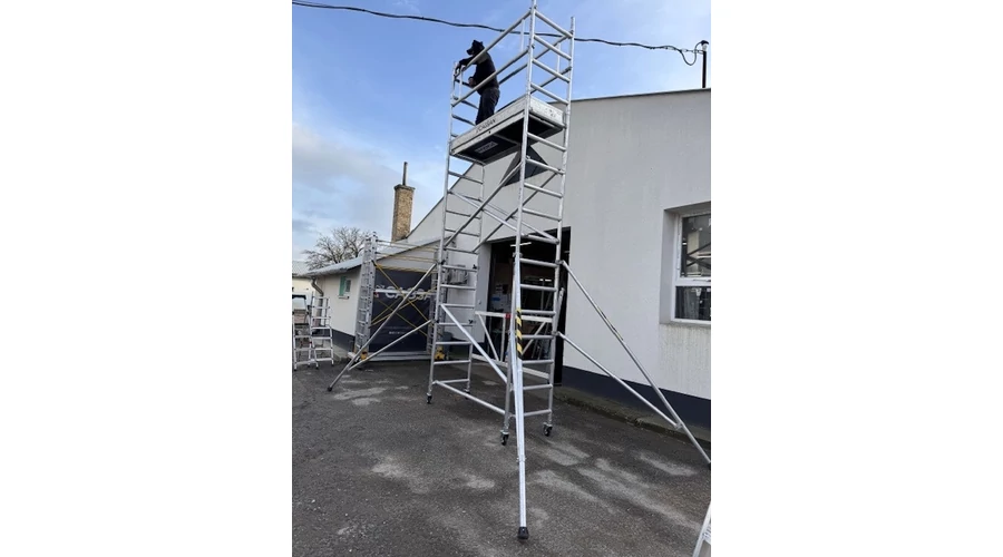 A ProTUBE F360 modell oldalsó lábai biztonságosabb munkakörnyezetet teremtenek az alapterület kiterjesztésével. Az állvány alumínium anyagból készült, így könnyű és könnyen mozgatható. A felépítés egyszerű és kényelmes. 5,65 m-ig állítható munkamagasság.