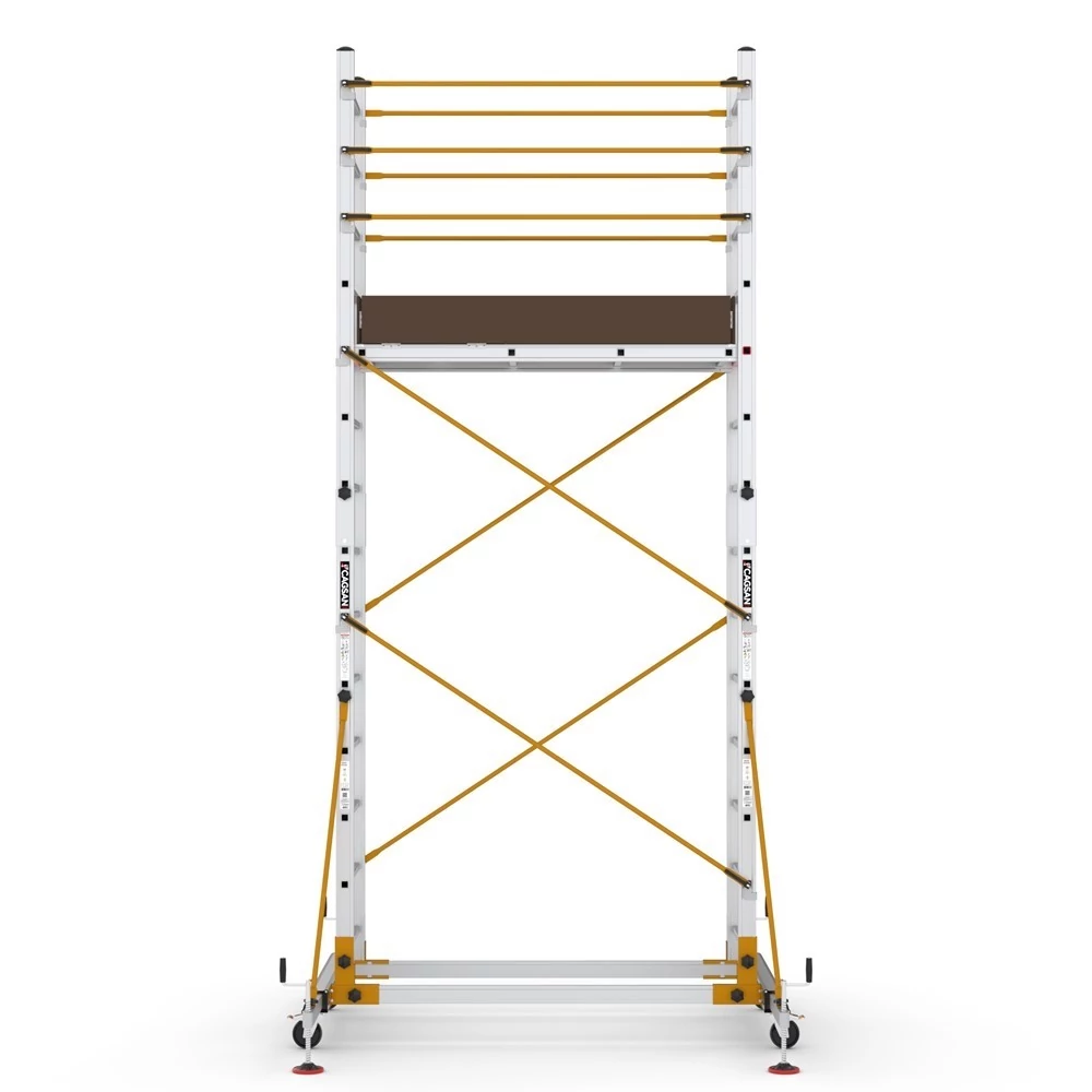 A MODYSAFE moduláris alumínium állványok, amelyek kerekes platformra épülnek. Biztonságos és robusztus szerkezetet alkot az acél csatlakozóberendezés és az alumínium modulok kombinációja. A modulok biztonságosan csatlakoznak egymáshoz lemezcsatlakozó berendezéssel, és további támasztékot biztosítanak keresztkötésekkel. Az állványplatform magassága a kívánt lépcsőfokra állítható, és az egy irányban belül nyíló emelvényfedélnek köszönhetően gyors hozzáférést biztosít.