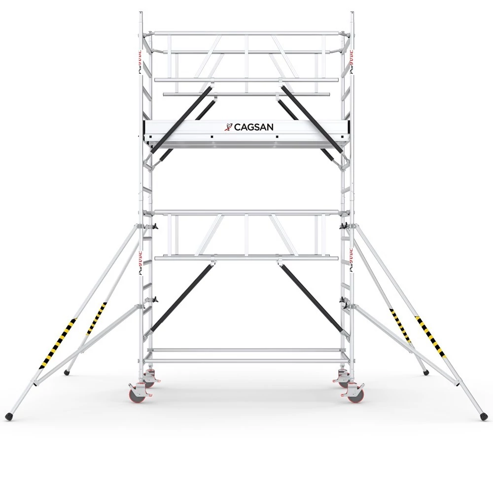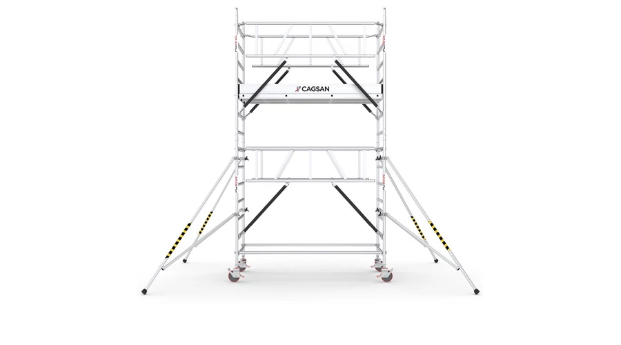 Biztonsági korlátrendszer: A megújult kialakítású biztonsági korlátrendszer lehetővé teszi az állványzat egyszerű felállítását személyi zuhanásvédelmi felszerelés használata nélkül. Ez a funkció extra biztonságot nyújt a munkakörnyezetben.