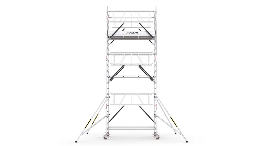 Biztonsági korlátrendszer: A megújult kialakítású biztonsági korlátrendszer lehetővé teszi az állványzat egyszerű felállítását személyi zuhanásvédelmi felszerelés használata nélkül. Ez a funkció extra biztonságot nyújt a munkakörnyezetben.