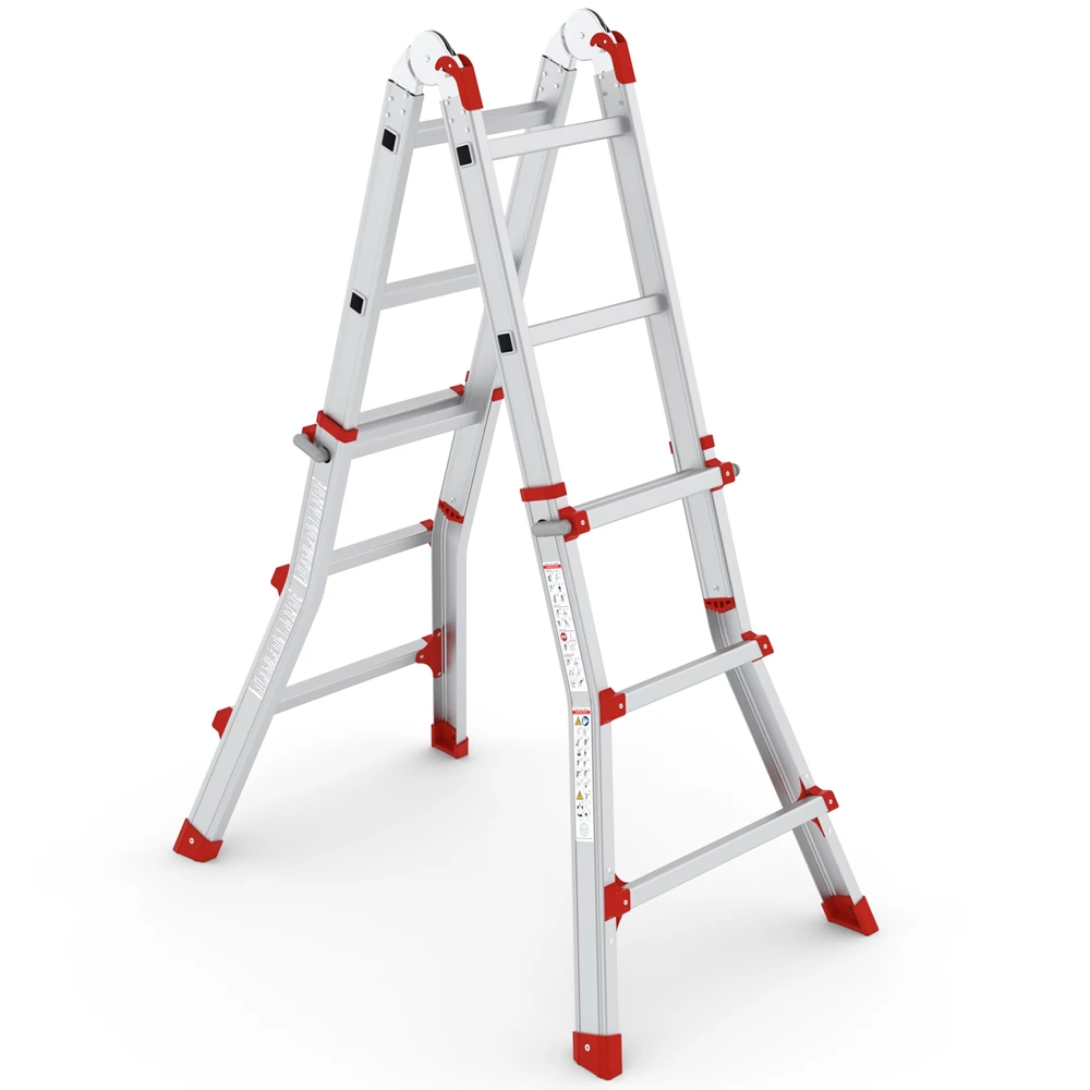 Sokoldalú felhasználás acélcsuklókkal: Acél kötéseinek köszönhetően a TOROS létra A típusú helyzetben létraként és egyenes létraként egyaránt használható. Ez a funkció rugalmasságot kínál, ha különböző munkapozíciókra van szüksége.