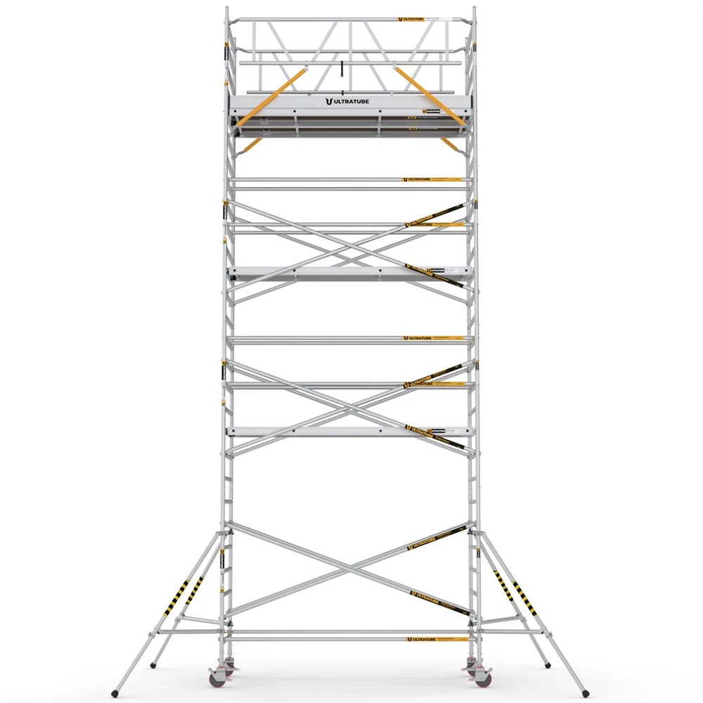 A könnyű alumínium modulokból álló UltraTUBE gyors és egyszerű telepítést kínál bármilyen magasságban. Az új védőkorlát-rendszerrel személyi zuhanásvédelmi felszerelés nélkül is telepíthető. Ezekkel a funkciókkal az UltraTUBE mind a munkabiztonsági szabványokat növeli, mind a könnyű használatot biztosítja. Az UltraTUBE_ULN_SD modell állványai biztonságosan és egyszerűen telepíthetők kereszt-, vízszintes és biztonsági korlátelemekkel.