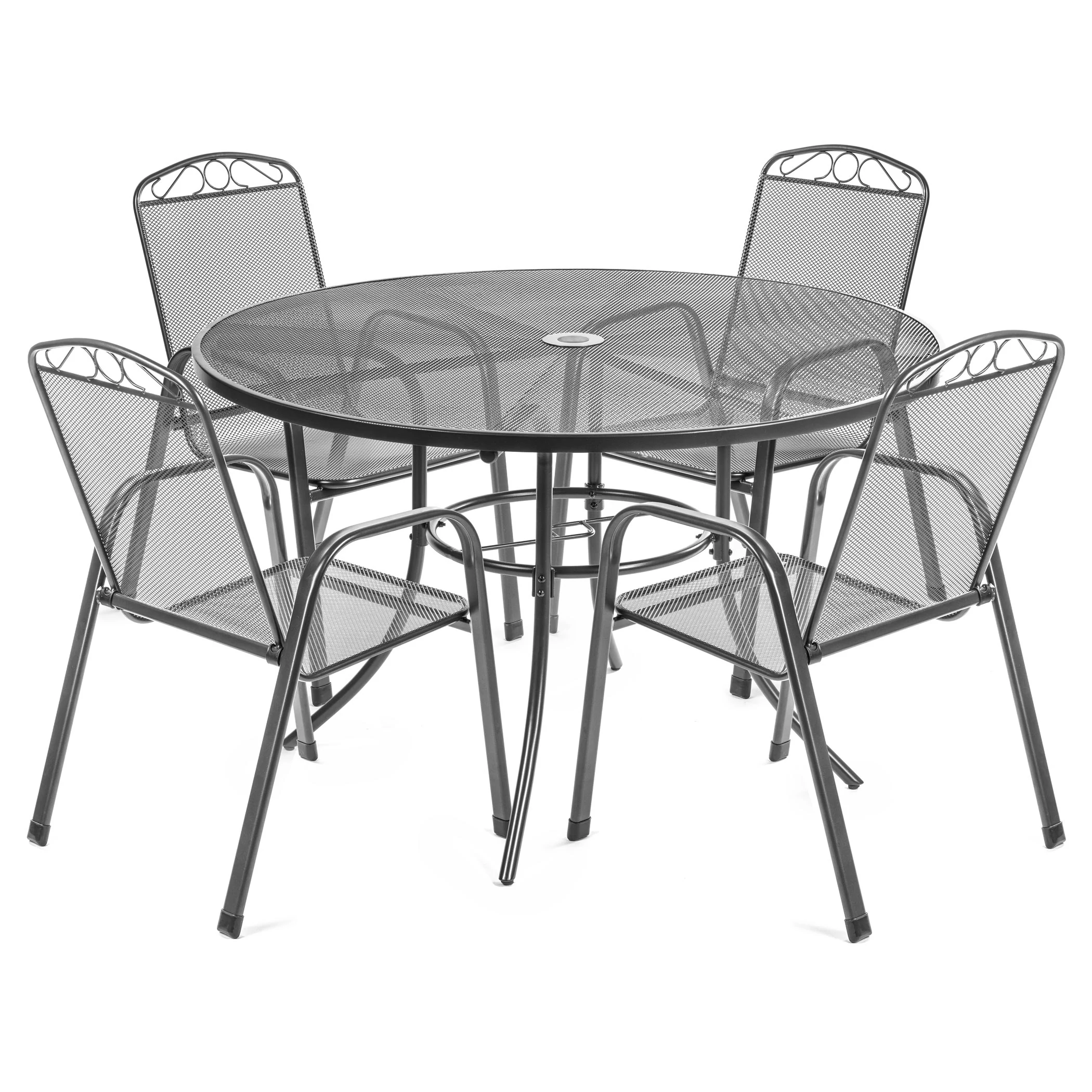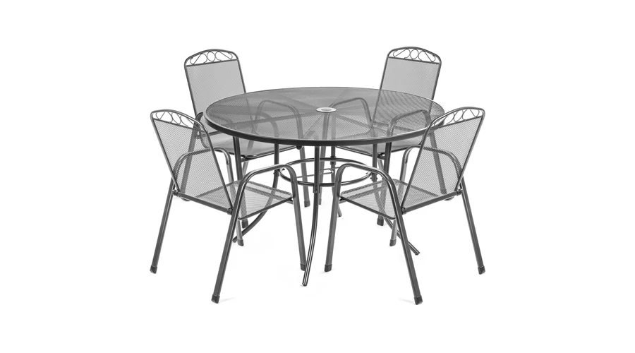 Fedezze fel a Fieldmann GRACE-4 kerti bútor szettet, amely a puritán elegancia és időtlen design tökéletes harmóniáját hozza el kertje vagy terasza számára. Ez a bútor szett a minőségi nemes acélból készült vázzal és acélhuzalos kivitelével egyaránt praktikus és esztétikus. A szett részét képezi egy 122 x 90 cm-es kerek asztal, melynek asztallapja szintén acélhuzalból készült, így egyedi megjelenést kölcsönözve a térnek. Az asztal kialakított napernyőnyílással rendelkezik, hogy még kellemesebbé tegye az időt a szabadban. A négy darab acélhuzalos szék magasított háttámlával és karfával biztosítja a kényelmet, miközben a letisztult design a kertje vagy terasza dizájnját emeli ki. A székek egymásra helyezhetők, így könnyen tárolhatók, és nem igényelnek nagy helyet. A bútorok impregnált felületkezelése ellenáll a szélsőséges hőmérsékleti viszonyoknak, így hosszú élettartamot biztosítanak. A karbantartásuk egyszerű, csak langyos, szappanos vízzel történő tisztítást igényel. Válassza a Fieldmann GRACE-4 kerti bútor szettet, hogy az időtlen elegancia és a prémium minőség összhangja körülvegye kikapcsolódásának pillanatait a szabadban!