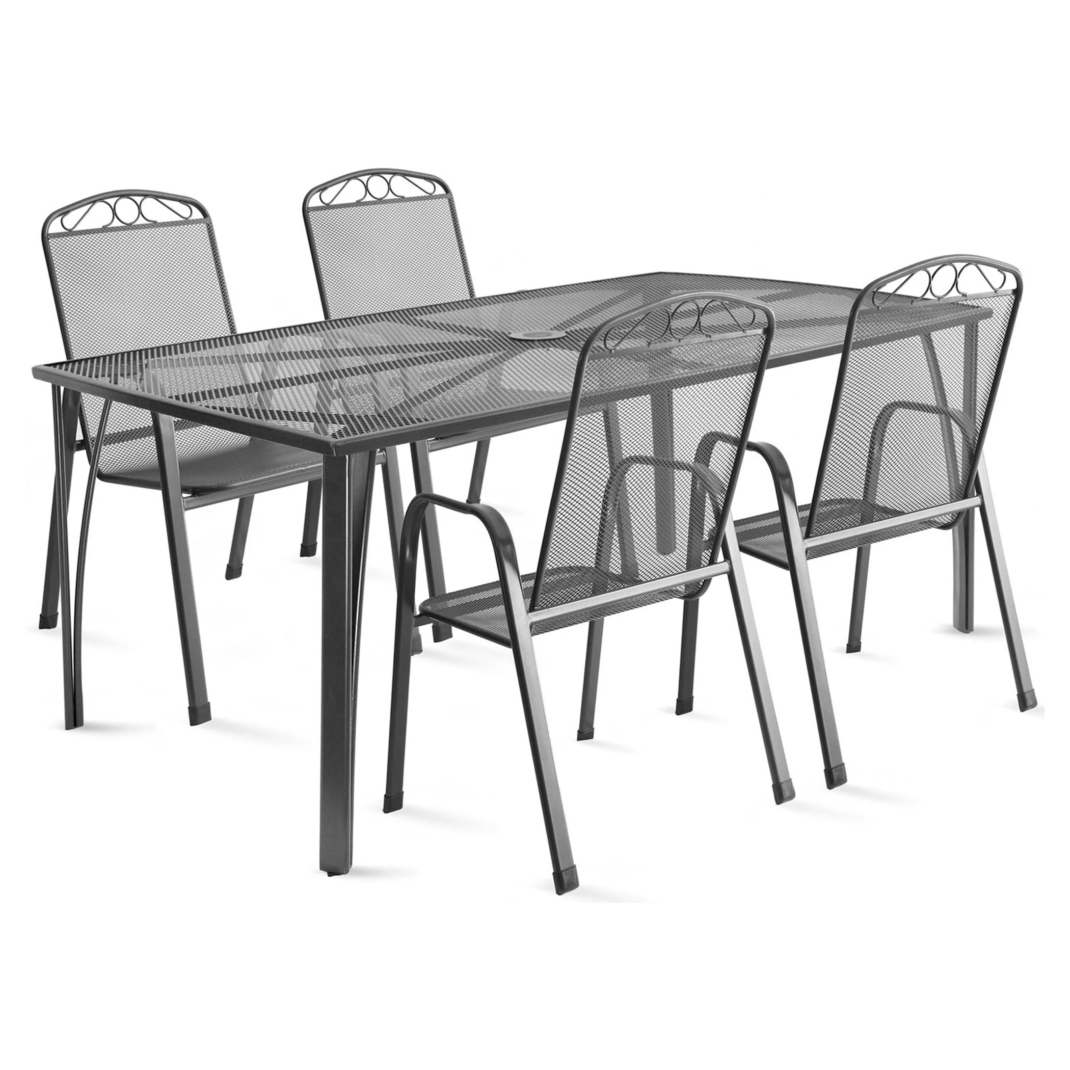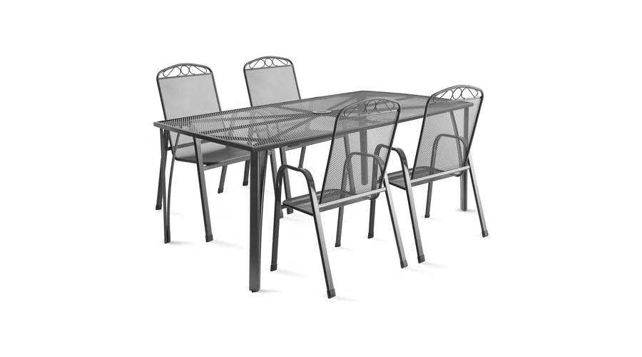 Fedezze fel a Fieldmann IRIS-4 kerti bútor szettet, amely a puritán elegancia és időtlen design tökéletes harmóniáját hozza el kertje vagy terasza számára. Ez a bútor szett a minőségi nemes acélból készült vázzal és acélhuzalos kivitelével egyaránt praktikus és esztétikus. A szett részét képezi egy 150 x 90 x 73 cm-es négyszögletes asztal, melynek asztallapja szintén acélhuzalból készült, így egyedi megjelenést kölcsönözve a térnek. Az asztal kialakított napernyőnyílással rendelkezik, hogy még kellemesebbé tegye az időt a szabadban. A négy darab acélhuzalos szék magasított háttámlával és karfával biztosítja a kényelmet, miközben a letisztult design a kertje vagy terasza dizájnját emeli ki. A székek egymásra helyezhetők, így könnyen tárolhatók, és nem igényelnek nagy helyet. A bútorok impregnált felületkezelése ellenáll a szélsőséges hőmérsékleti viszonyoknak, így hosszú élettartamot biztosítanak. A karbantartásuk egyszerű, csak langyos, szappanos vízzel történő tisztítást igényel. Válassza a Fieldmann IRIS-4 kerti bútor szettet, hogy az időtlen elegancia és a prémium minőség összhangja körülvegye kikapcsolódásának pillanatait a szabadban!