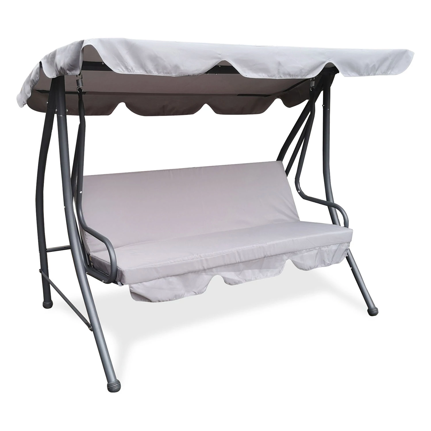 Fedezze fel a Fieldmann FDZN 5207 3 személyes hintaágy luxusát és kényelmét, és teremtsen egyedi pihenőhelyet kertjében vagy teraszán! Az FDZN 5207 hintaágy kivételes minőségű anyagokból és gondos tervezésből ered, garantálva a prémium élményt a szabadban. A 3 személyes kivitel lehetővé teszi, hogy családja vagy barátai együtt élvezhessék a hintázás kényelmét. A hintaágy méretei 200 x 120 x 164 cm, így elég tágas ahhoz, hogy mindenkinek kényelmes legyen, és egyaránt alkalmas kertekben és teraszokon való elhelyezésre. Az acél vázas szerkezet rendkívül könnyűsúlyú és ugyanakkor erőteljes, lehetővé téve a könnyű mozgatást és stabil elhelyezést. Az impregnált Oxford szövet 180 g/m2 sűrűségű, így ellenáll az időjárás viszontagságainak, és biztosítja a hosszú élettartamot. A vastagon kipárnázott ülő- és hátpárnák további kényelmet nyújtanak, így minden hintázás egy igazi pihenési élmény lesz. A hintaágy textillel bevont teteje árnyékot teremt, így a forró nyári napokon is élvezheti a kerti pihenést. A hintaágy terhelhetősége 260 kg, így bátran használhatja azt egyszemélyes pihenésre vagy akár barátaival és családjával való közös időtöltésre. Válassza a Fieldmann FDZN 5207 hintaágyat, és élvezze a kertje vagy terasza elegáns és kényelmes díszeit. A prémium minőségű anyagok és a figyelmes tervezés garantálja, hogy hosszú éveken át élvezhesse a kényelmet és a pihenést.