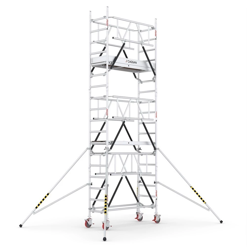 A praktikus rögzítőeszközöknek köszönhetően rövid idő alatt felépíthető, és biztonságosabb munkakörnyezetet biztosít az alapterület oldalra nyíló lábakkal (kitámasztókkal) történő kiegészítése.