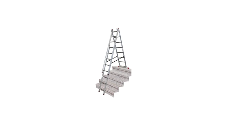 Háromrészes, sokoldalúan használható alumínium sokcélú létra. Használható támasztó-, álló- és tolólétraként is.