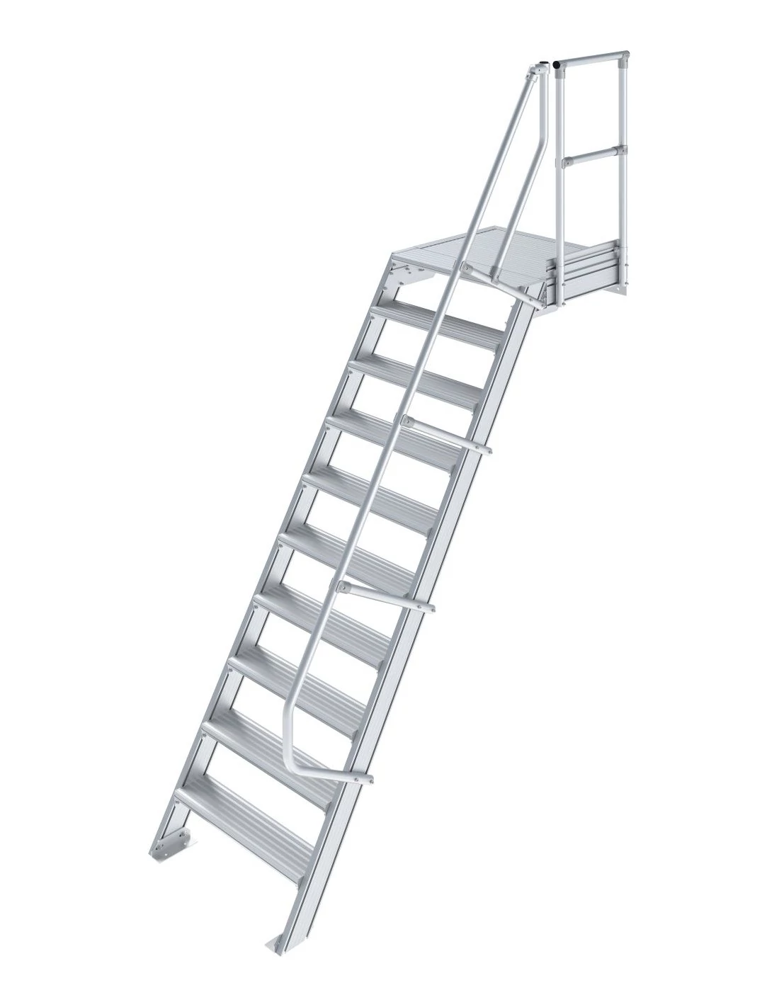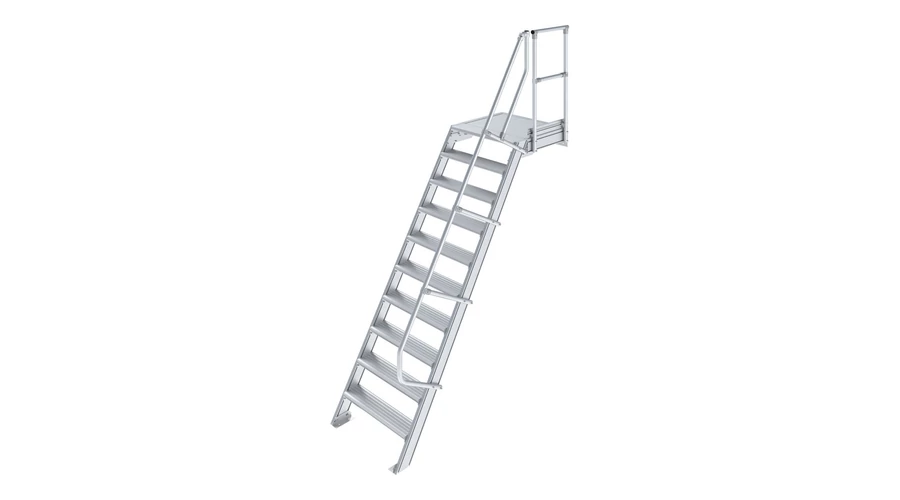Robusztus alumíniumlépcső ajtók vagy közbenső szintek biztonságos megközelítéséhez, az EN ISO 14122 szabványnak megfelelően.