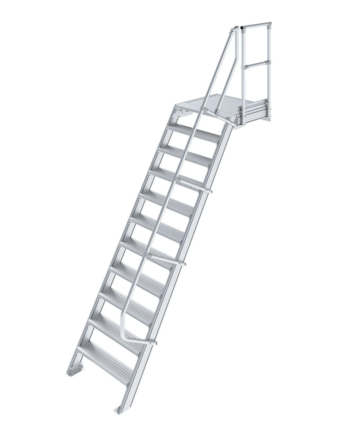 Robusztus alumíniumlépcső ajtók vagy közbenső szintek biztonságos megközelítéséhez, az EN ISO 14122 szabványnak megfelelően.