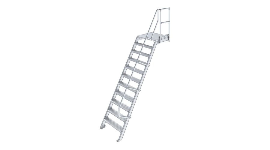Robusztus alumíniumlépcső ajtók vagy közbenső szintek biztonságos megközelítéséhez, az EN ISO 14122 szabványnak megfelelően.