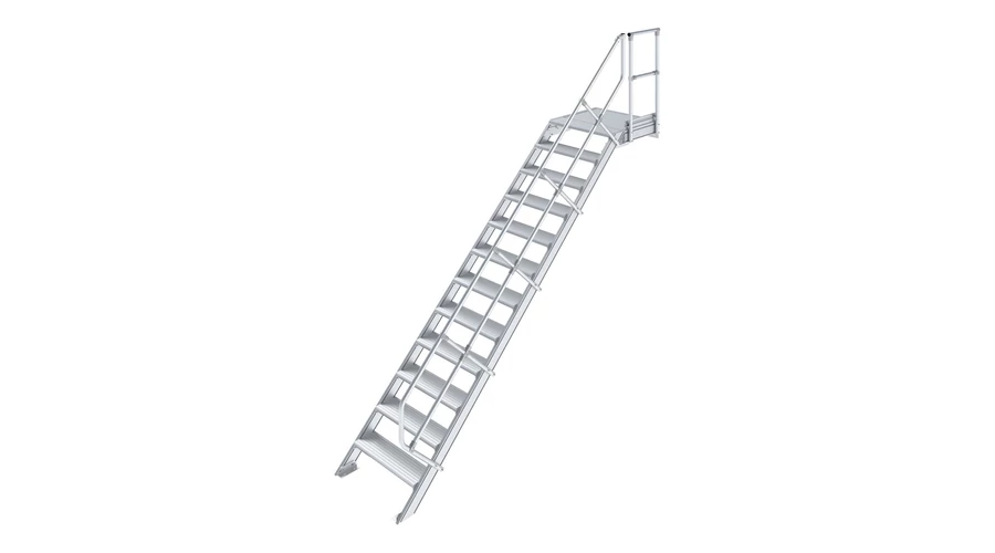 Robusztus alumíniumlépcső ajtók vagy közbenső szintek biztonságos megközelítéséhez, az EN ISO 14122 szabványnak megfelelően.