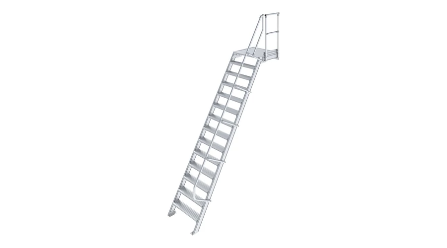Robusztus alumíniumlépcső ajtók vagy közbenső szintek biztonságos megközelítéséhez, az EN ISO 14122 szabványnak megfelelően.