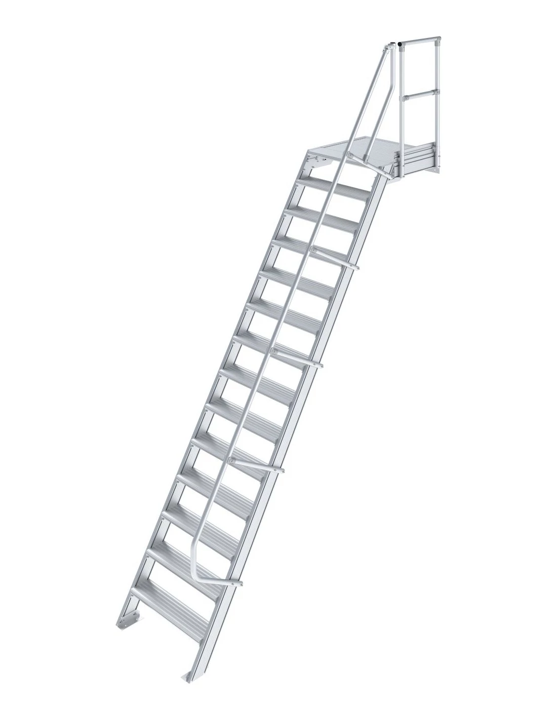 Robusztus alumíniumlépcső ajtók vagy közbenső szintek biztonságos megközelítéséhez, az EN ISO 14122 szabványnak megfelelően.