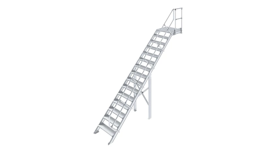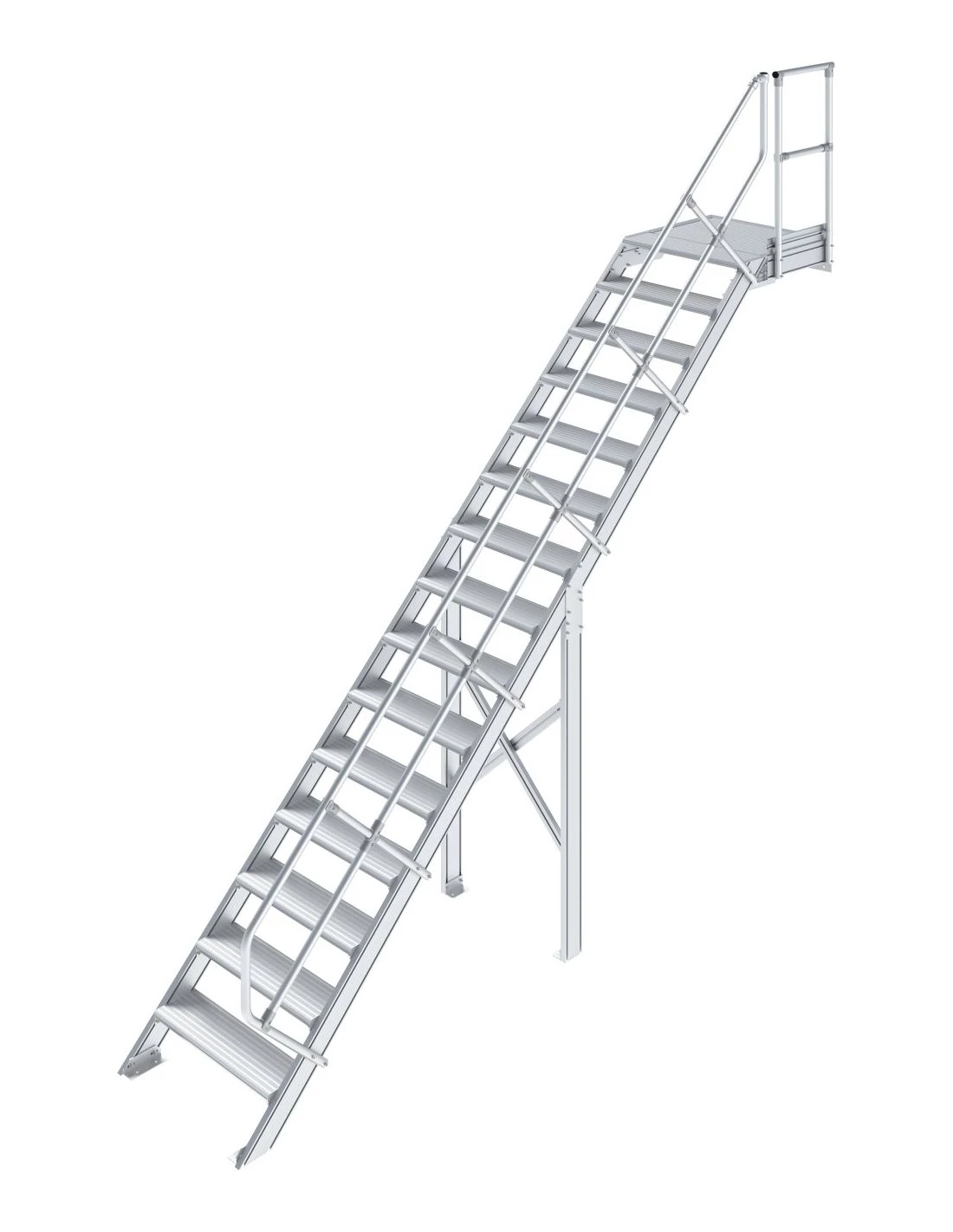 Robusztus alumíniumlépcső ajtók vagy közbenső szintek biztonságos megközelítéséhez, az EN ISO 14122 szabványnak megfelelően.