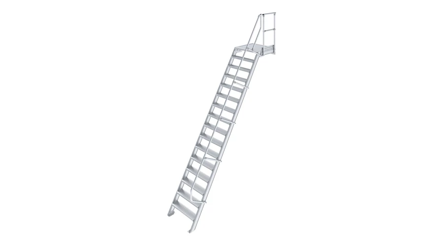 Robusztus alumíniumlépcső ajtók vagy közbenső szintek biztonságos megközelítéséhez, az EN ISO 14122 szabványnak megfelelően.