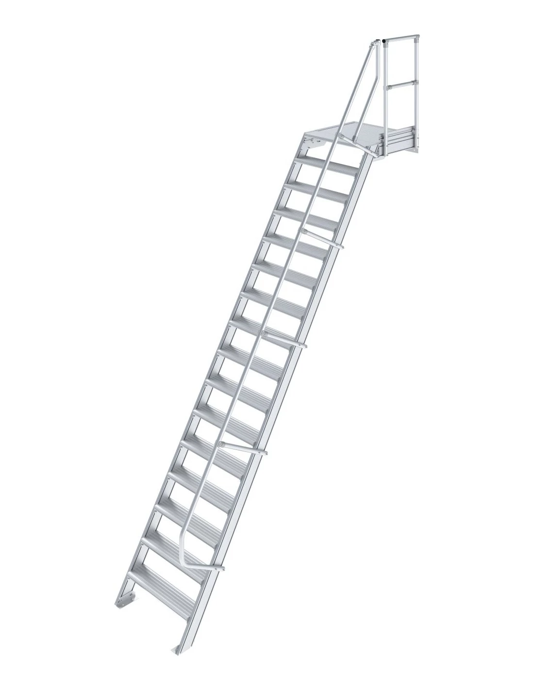 Robusztus alumíniumlépcső ajtók vagy közbenső szintek biztonságos megközelítéséhez, az EN ISO 14122 szabványnak megfelelően.