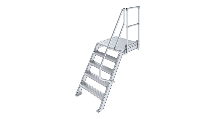 Robusztus alumíniumlépcső ajtók vagy közbenső szintek biztonságos megközelítéséhez, az EN ISO 14122 szabványnak megfelelően.