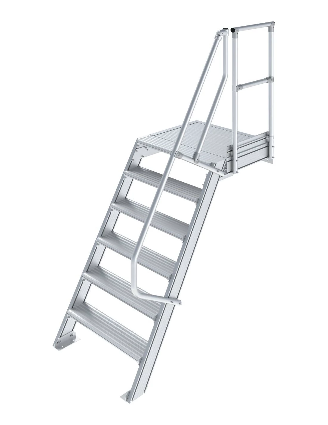 Robusztus alumíniumlépcső ajtók vagy közbenső szintek biztonságos megközelítéséhez, az EN ISO 14122 szabványnak megfelelően.