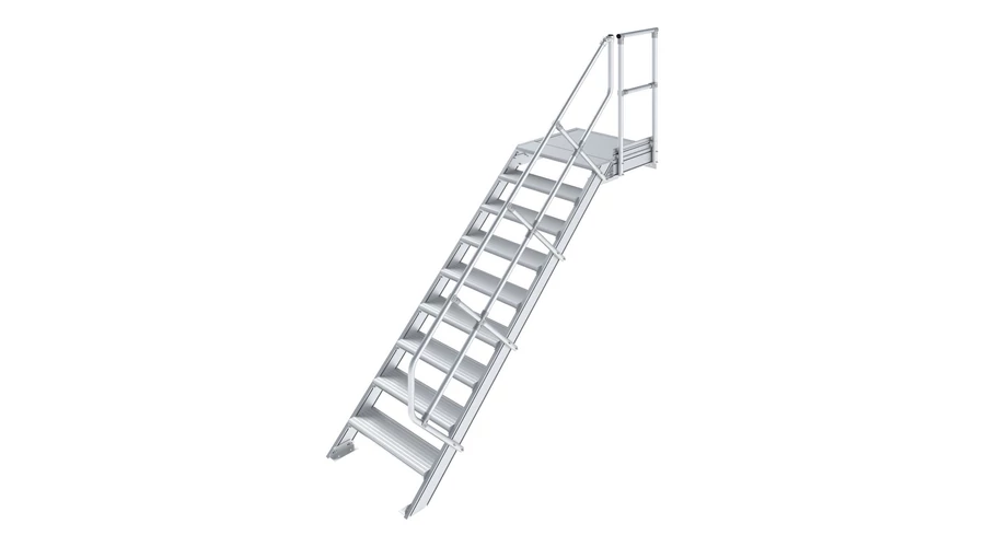 Robusztus alumíniumlépcső ajtók vagy közbenső szintek biztonságos megközelítéséhez, az EN ISO 14122 szabványnak megfelelően.