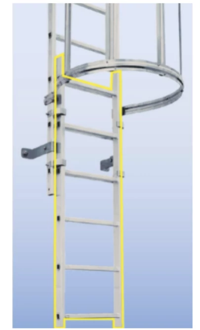 • + A rögzített létra minimális magassága legalább 6,5 m kell hogy legyen a talajtól számítva