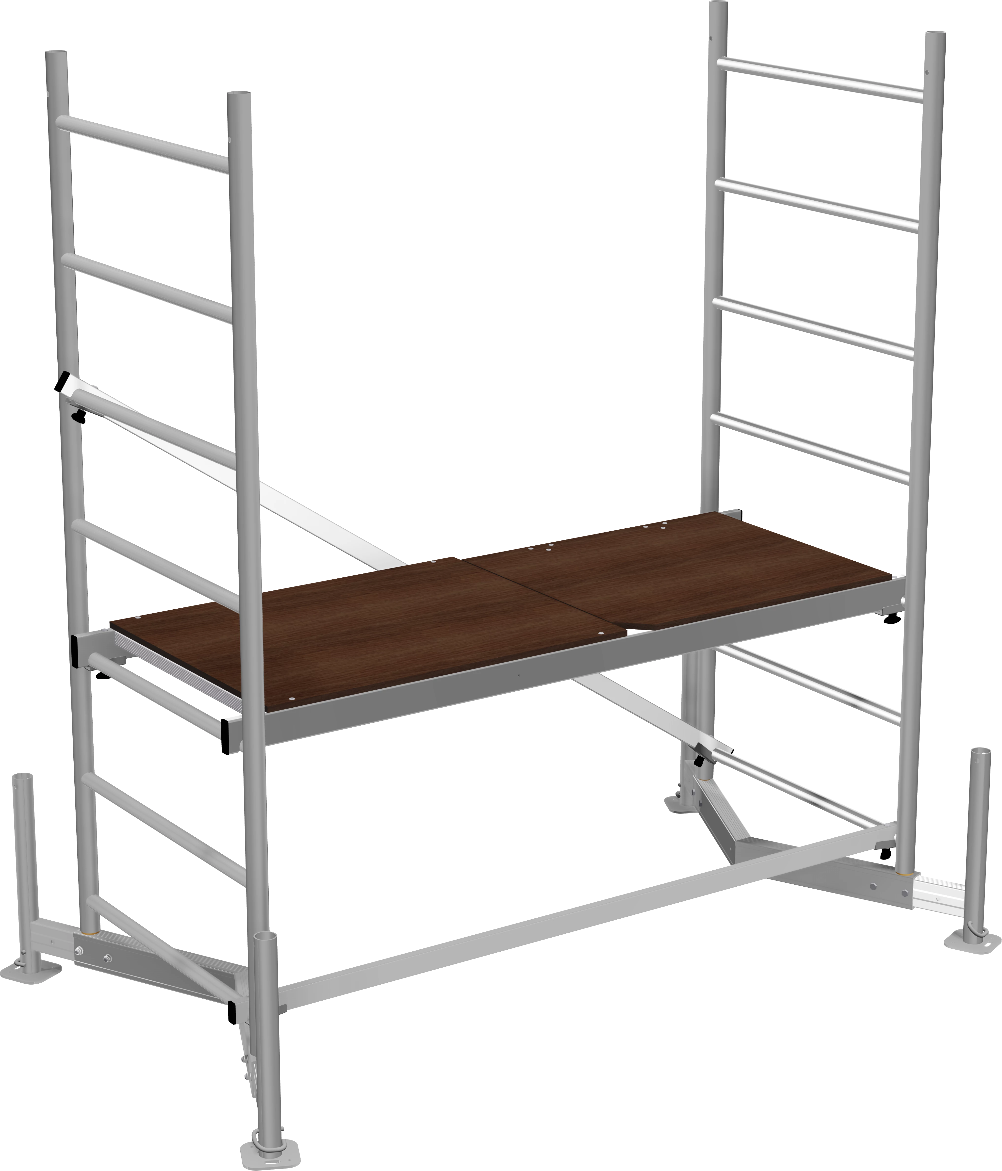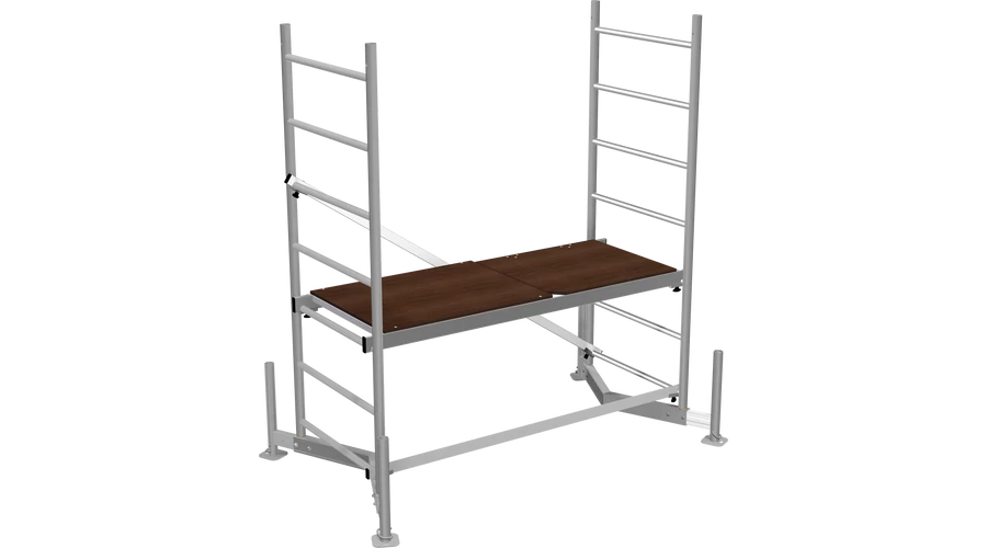 - A ClimTec alapállvány az alacsony állványmagasság és a behúzható alaptartók miatt összeszerelt állapotban is problémamentesen tolható át az ajtókon, és így a belső munkák ideális állványa