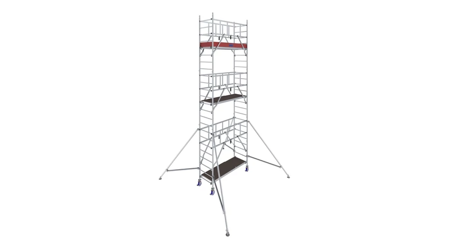 Az egyszerűen felszerelhető kitámasztók 4,20 m munkamagasságtól fokozott stabilitást biztosítanak