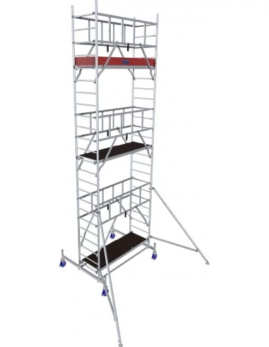 A nagy szilárdságú acél kitámasztók 4,30 m munkamagasságtól optimális stabilitást biztosítanak