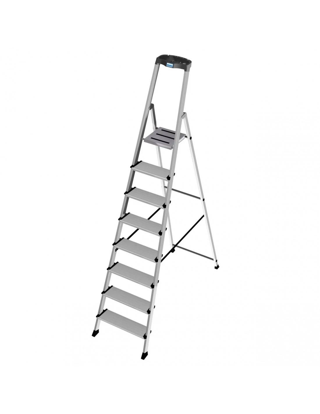 A kényelmes és ergonomikus lépcsőfokos állólétra komfortos munkavégzést tesz lehetővé a 125 mm mély fokoknak és a kábeltartóval ellátott multifunkciós tálcának köszönhetően.