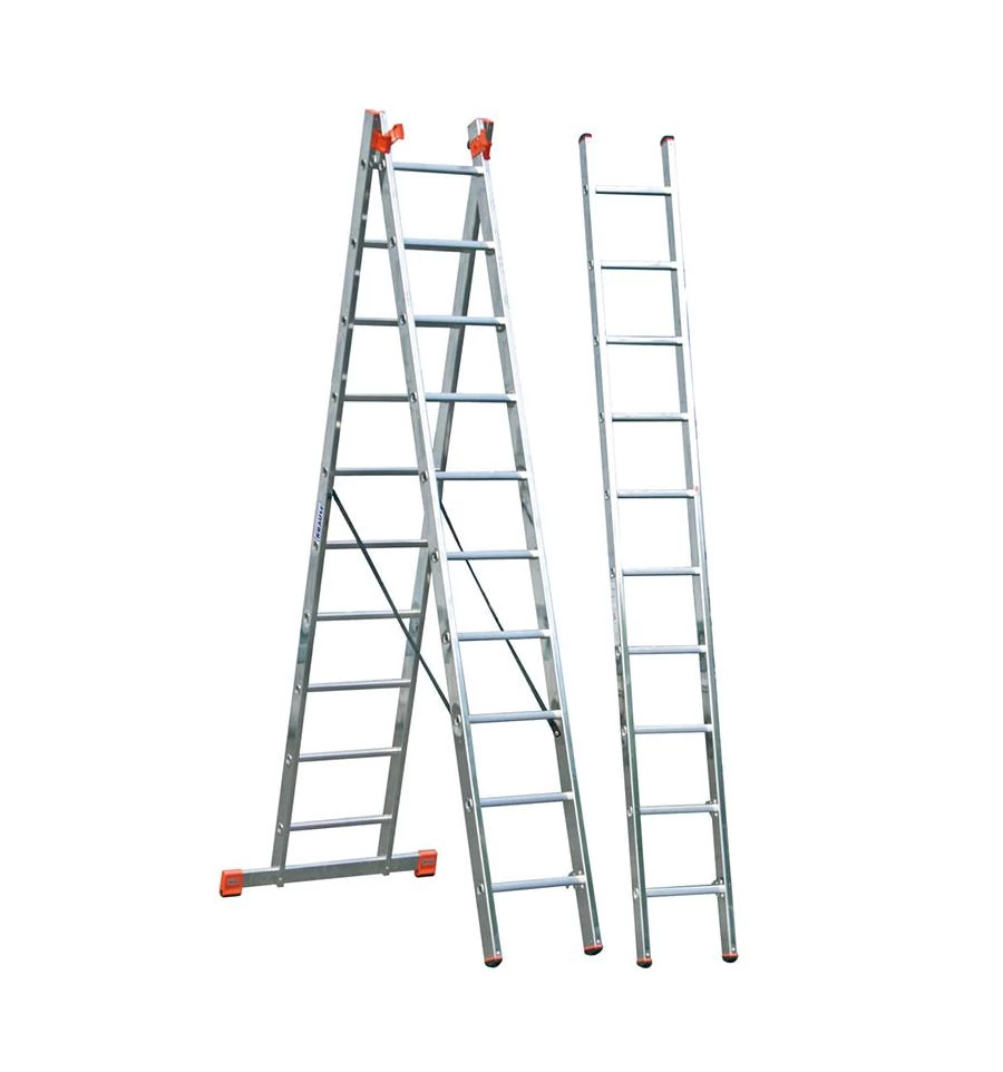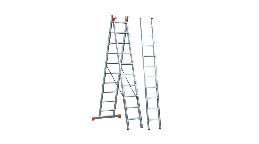 Háromrészes alumínium sokcélú létra, amely támasztó-, toló- és állólétraként is használható a kitolható létrarésszel.