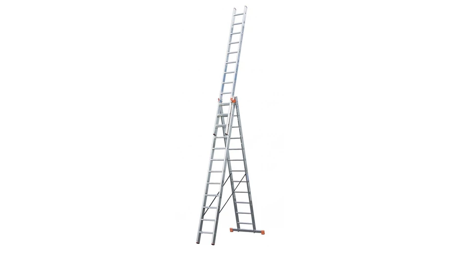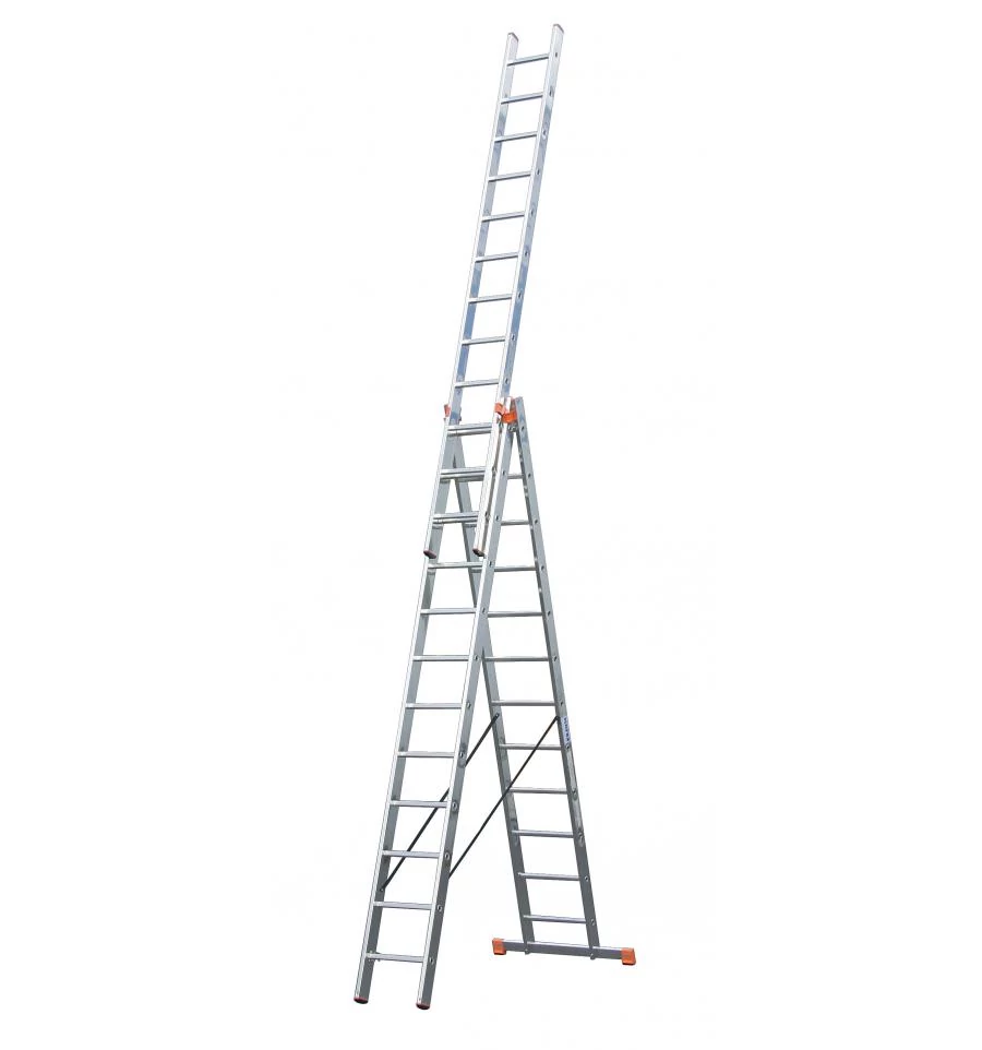 Háromrészes alumínium sokcélú létra, amely támasztó-, toló- és állólétraként is használható a kitolható létrarésszel.