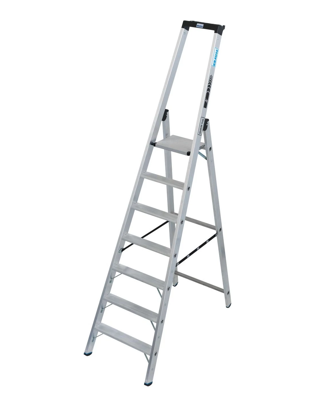 80 mm mély, profilozott és megerősített D-lépcsőfokok a biztonságos feljutás és a kényelmes állás érdekében, amelyek megfelelnek a TRBS 2121-2 szabvány, a lépcsőfokok munkahelyként történő használatára vonatkozó követelményeinek
