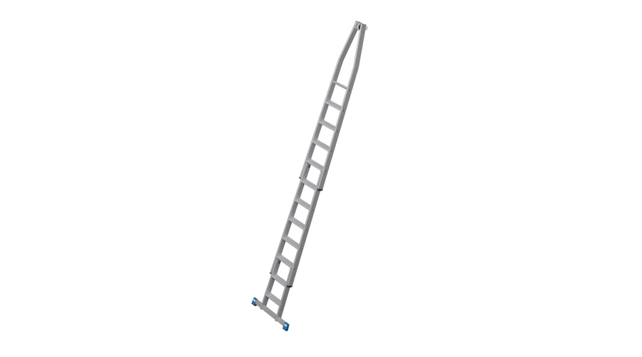 A létra felső tagja fali vezetőgörgőkkel és kopásálló, puha gumi anyagú érintkező blokkal, ékkivágással, mely házsarkakra és ablakprofilokra helyezhető
