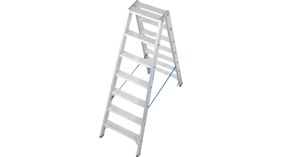 A professzionális munkálatokhoz kifejlesztett, két oldalon járható, lépcsőfokos alumíniumlétra nagyfokú stabilitást biztosít a mindennapi kemény munka során.