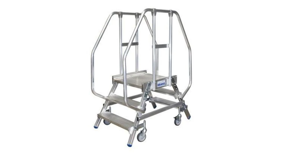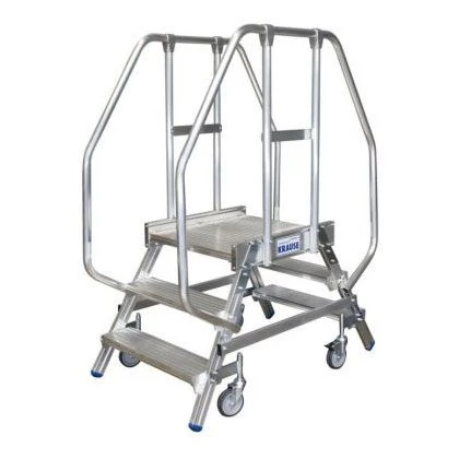+ Két oldalon járható gurítható alumínium dobogó 175 mm mély, csúszásmentes lépcsőfokokkal és nagy állófelülettel, amely körbefutó dobogókorláttal van felszerelve a biztonságos és kényelmes munkavégzés érdekében + Kis állószélesség, ideális a polcok közelében végzett munkához