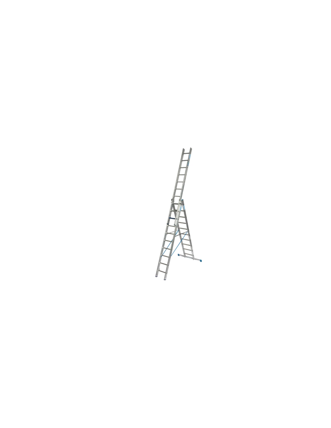 Háromrészes sokcélú alumínium létra létrafok/lépcsőfok kombinációval, TRBS 2121-2 szerinti alkalmazáshoz. Az új, innovatív létrafok/lépcsőfok kombinációnak köszönhetően a létrák feljutást segítő eszközként és munkaterületként is használhatóak. Alkalmazható támasztó-, toló- és állólétraként, valamint a KRAUSE Trigon kitámasztónak köszönhetően az egyes létratagok kivehetőek és külön-külön használhatóak.
