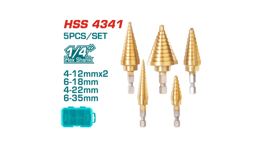 A 5 lépcsős fúrókészlet HSS 4341 IND kiváló választás, ha különböző méretű lyukak fúrására van szükséged. A készletben összesen 5 darab fúró található, mindegyik más-más átmérővel és lépésközzel rendelkezik. A fúrók anyaga HSS 4341, ami kiváló minőséget és tartósságot biztosít. A fúrók 1/4″ vagy 5/16″ hatlapú szárral rendelkeznek, amelyek könnyű és biztos fogást biztosítanak. A fúrók egy praktikus műanyag dobozban vannak tárolva, így könnyen és rendben tarthatod azokat. A készlettel széles körben használhatod otthoni vagy szakmai célokra.