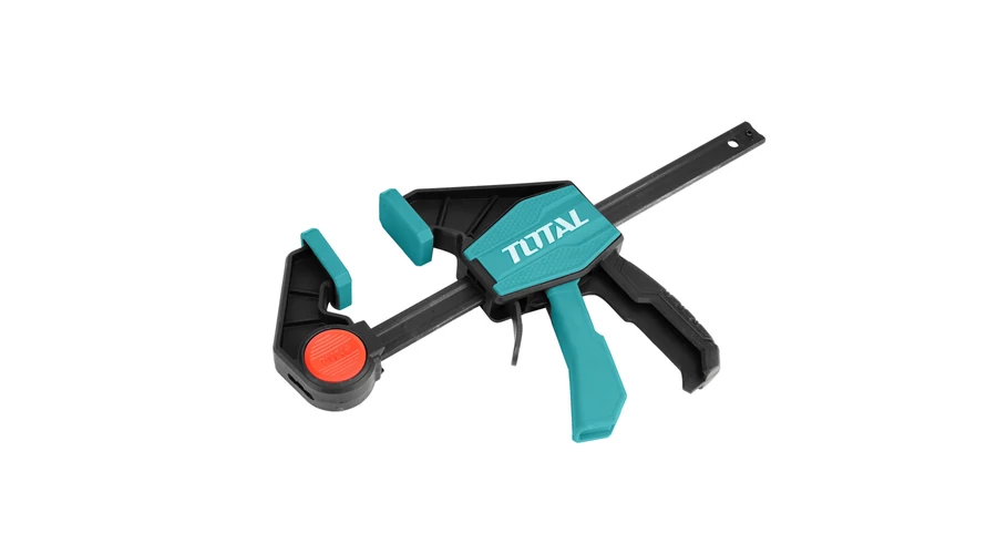 Gyors műhelyszorító TOTAL THT1340602 (ipari sorozat) kiegészítő eszközként használatos a részek megbízható összekapcsolásához szoros nyomással egymás mellett. Megbízható segítőtárssá válik a favágóknak, lakatosoknak és otthoni mesterembereknek. A fogó mérete 63×300 mm. A maximális erő 60 kg. Az útmutató minőségi acélból készült, ezért az eszköz jelentős terheléseket is elvisel, és kopásálló. Az antikorróziós bevonat meghosszabbítja a fogó élettartamát. Az eszközház ütésálló műanyagból készült. A TOTAL THT1340602 munkatartói speciális bevonattal vannak ellátva, amelyek megvédik az alkatrészeket a sérülésektől. Az ergonomikus fogantyú és az eszköz kis súlya kényelmet biztosít a fogóval végzett munkavégzés során, megkönnyítve a folyamatot.