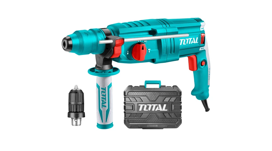 Az elektromos forgó-vésőkalapács TOTAL TH308268-2 a cserélhető befogófejjel ellátott félprofesszionális eszköz, amelyet különféle feladatokhoz terveztek, beleértve a beton fúrását és darálását, valamint a fa, fém, műanyag és más anyagok fúrását.