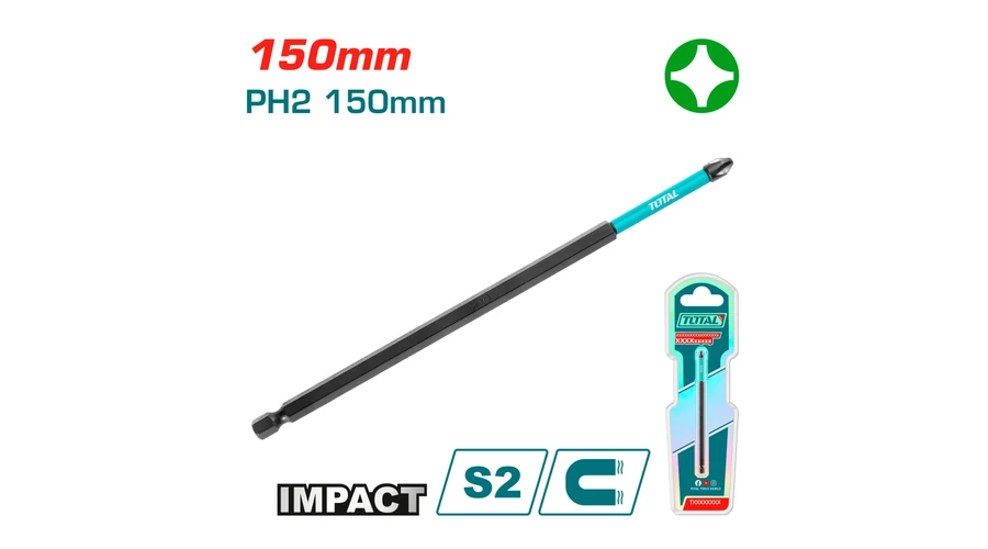 Egy erős és megbízható ütvecsavarozó bit, melyen a PH2 jelzés emelkedik ki. A bit hossza 150 mm, és kiváló minőségű S2 ipari acélból készült. A fekete felület elegáns megjelenést kölcsönöz neki, és a mágneses tulajdonságok lehetővé teszik a könnyű használatot. Egy darabos kiszerelésben érkezik bliszterben, így könnyen tárolható és hordozható. Ideális választás a hatékony munkavégzéshez és a precíz eredmények eléréséhez.