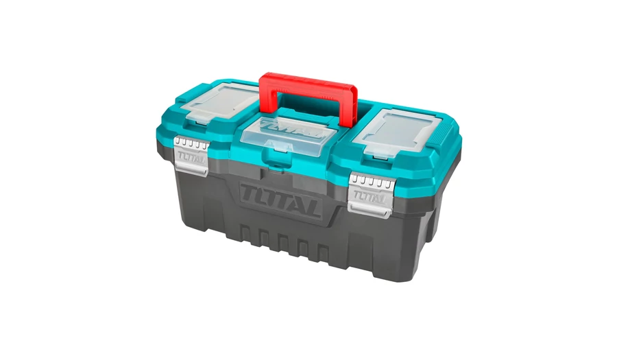 Praktikus és tartós műanyag szerszámosláda, mely ideális szerszámok tárolására és szállítására.