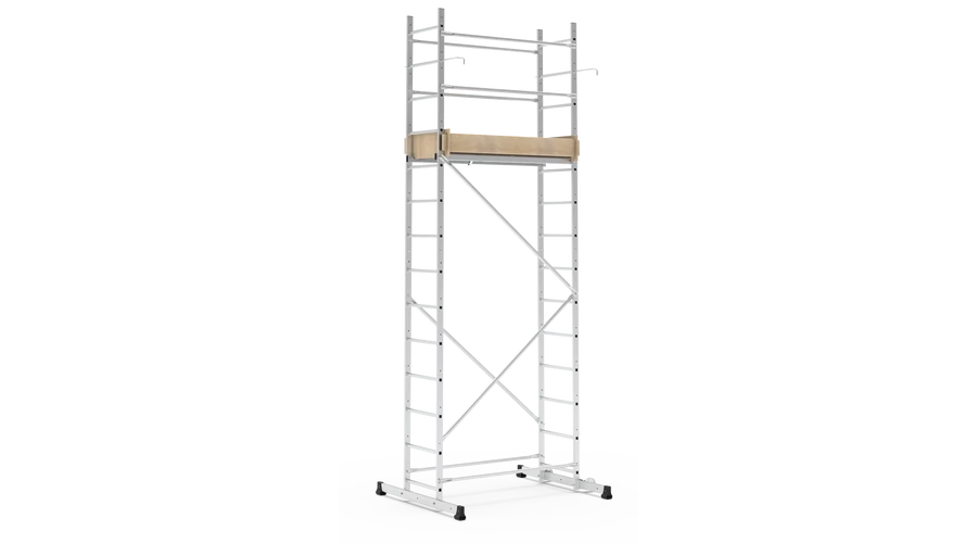 HEIMWERKERGERÜST+ állvány, 5 m-es munkamagasság. Teherbírás: 200 kg/m2. Megfelel az EN-1004-1 szabványnak kitámasztással.