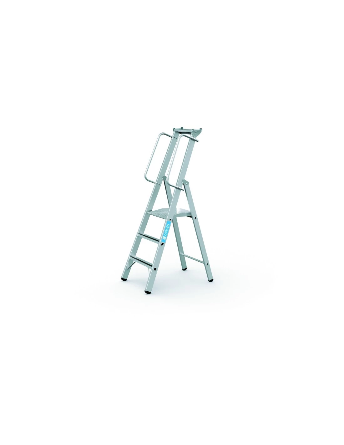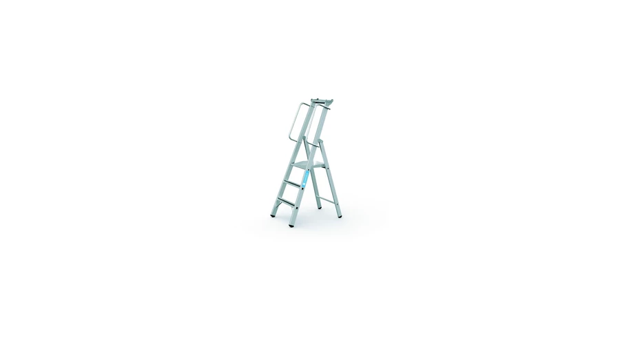 Állásbiztonság nagy állófelületen, csúszásbiztos fel-/lejutás a Safer Step technológiának köszönhetően. Úgynevezett „Könnyű dobogós létrák” - BG-Bau által támogatott.