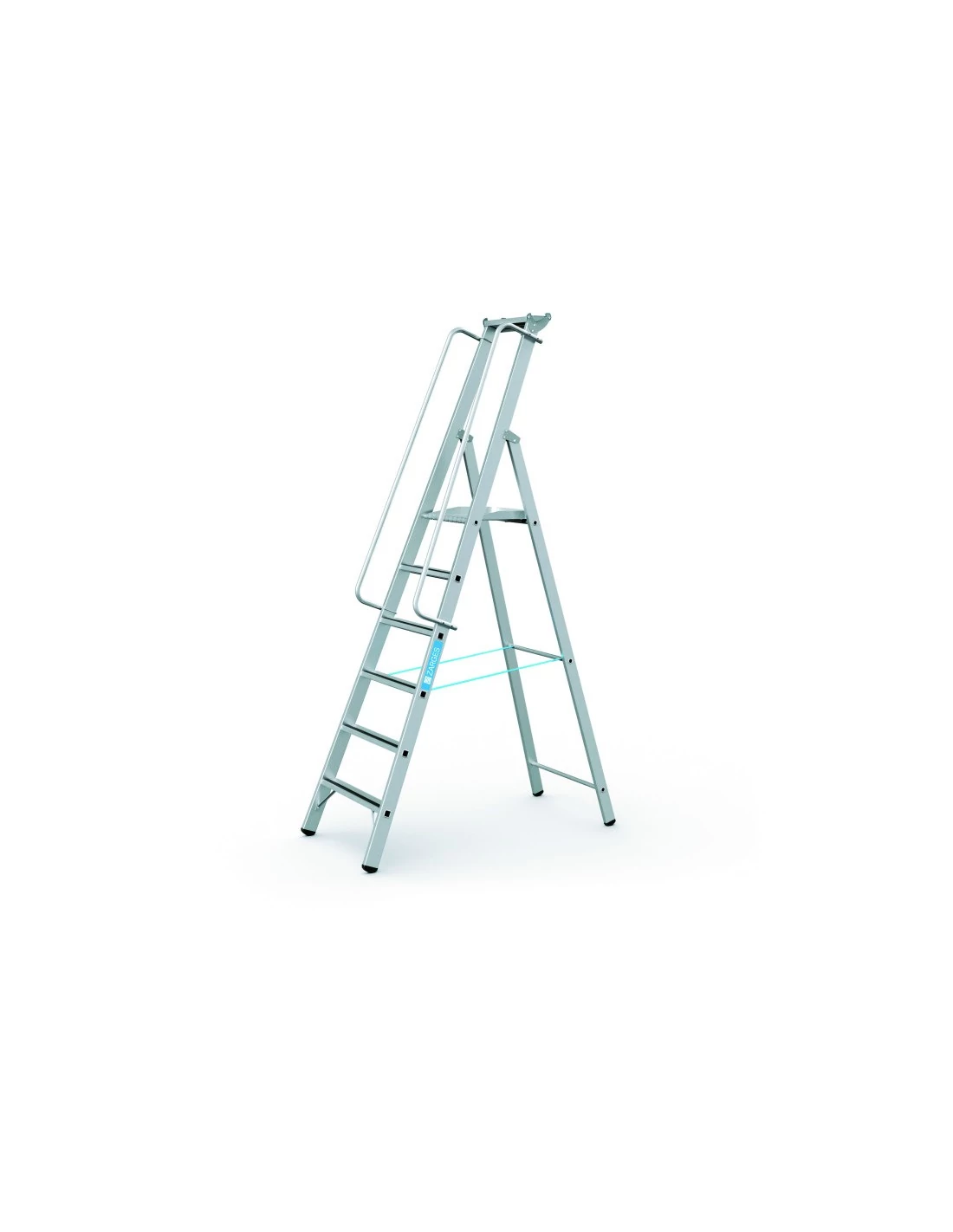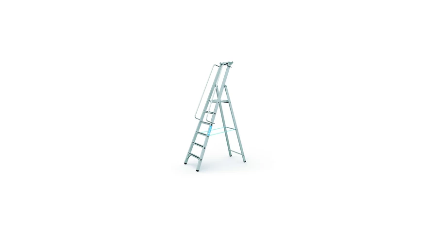 Állásbiztonság nagy állófelületen, csúszásbiztos fel-/lejutás a Safer Step technológiának köszönhetően. Úgynevezett „Könnyű dobogós létrák” - BG-Bau által támogatott.