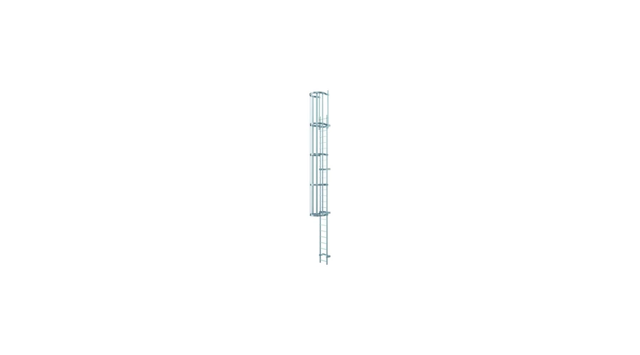 Mászási védősín biztonsági rendszerként a DIN EN 353-1, DIN 18 799-1 és DIN EN ISO 14 122-4 szerint, 10 m-nél magasabban egyszakaszos tűzlétra kivitelben.