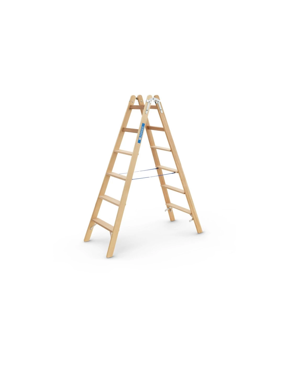 A létraszárak válogatott, kiváló minőségű fenyőfából, a lépcsőfokok bükkfából.